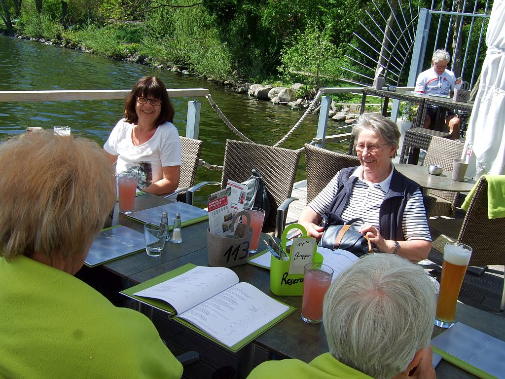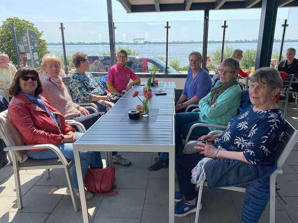 Eigentlich sollte es ein entspannter Ausflug, an Himmelfahrt, in den Botanischen Garten Hamburg werden. Doch leider machte den Landfrauen aus Stuvenborn das Hamburger Derby ein Strich durch die Rechnung. Pünktlich um 11 h starteten wir, bei bedecktem Himmel, per Fahrgemeinschaften in Stuvenborn. Angekommen in Klein Flottbek fanden wir keinen Parkplatz, auch in den Nebenstraßen nicht. Also was tun? Ganz in der Nähe liegt ja die Elbe, sollten wir alternativ einen Spaziergang an der Elbe unternehmen? Flexibel, wie Landfrauen so sind, wurde der Vorschlag in die Tat umgesetzt. Vom Parkplatz „Baurs Park“ ging es über das Treppenviertel an den Elbstrand, mittlerweile zeigte sich die Sonne von ihrer besten Seite. Nach zweistündigem Spaziergang wurde ein reich gefüllter Bollerwagen aus dem Auto gezaubert. Bei Kaffee und Kuchen wurde einhellig festgestellt, dass dieser Ausflug eine gute Alternative war und der Botanische Garten ein anderes Mal besucht wird.