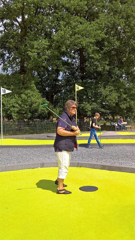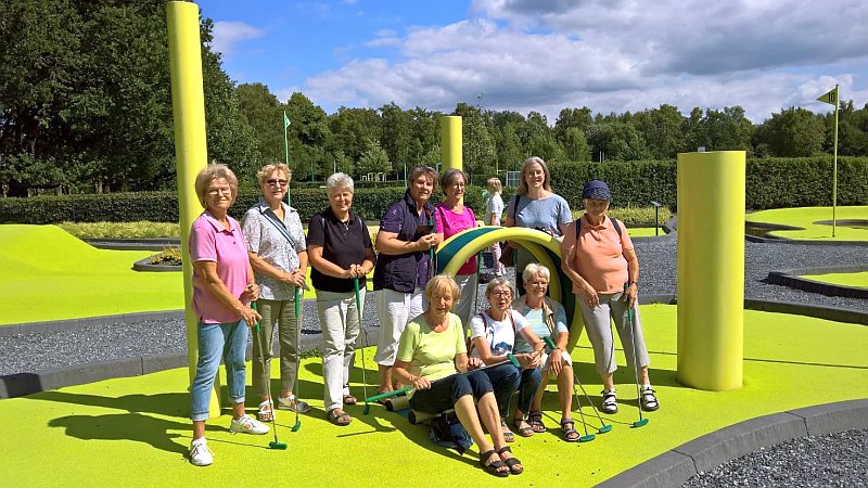 Am 18.7. haben sich 12 Landfrauen zum „Adventure Golf“ im Stadtpark Norderstedt getroffen. Bei bombigem Wetter und guter Laune wurden 4 Gruppen gebildet und los ging der Spaß. Die Golfanlage ist perfekt für alle, die das Abenteuer mit dem kleinen Ball in pink, gelb oder weiß suchen. 18 moderne neongrün-gelbe Bahnen laden mit ihren spannenden Hindernissen ein. Anfänger und Fortgeschrittene können hier den perfekten Schwung üben und ihre Ballkunst unter Beweis stellen. Nach einer Spielzeit von 1,5 Std. hat jeder für sich festgestellt: „Super, es geht doch“. Eine kleine Wanderung zum Norderstedter Strandhaus, hier gab es Kaffee und Kuchen, rundete den Nachmittag ab.