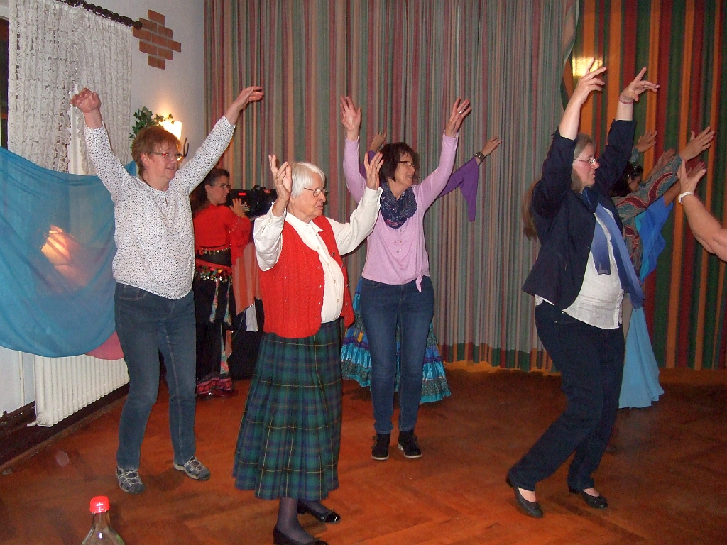 55 Landfrauen aus den Ortsgruppen Seth, Oering, Stuvenborn und Umgebung trafen sich im Gasthof „Goldener Hahn“ in Stuvenborn um den orientalischen Tanz kennenzulernen. Unter dem Namen „Passion Orientale“ haben sich 6-8 Frauen aus Norderstedt, vor rund 10 Jahren zusammen gefunden, um Musik, Tanz und Lieder der afrikanischen Kunst zu erlernen und darzubieten. Nach der Aufführung einiger Tänze waren die Landfrauen an der Reihe und es herrschte buntes Treiben auf der Tanzfläche.