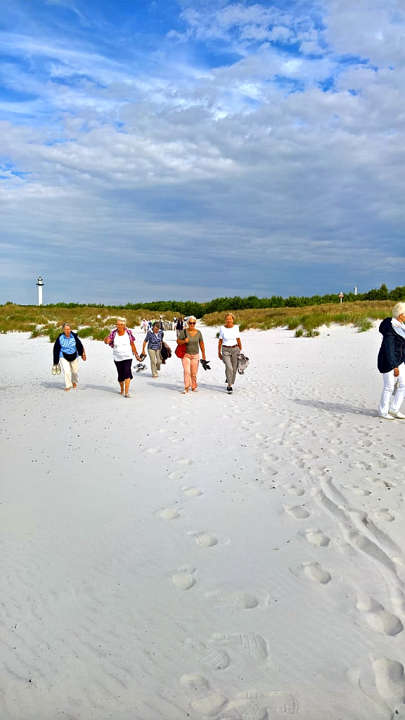 Eine kleine Reisegruppe machte sich mit dem Bus auf den Weg nach Bornholm. Von Saßnitz aus ging es mit der Fähre nach Rönne und weiter zum Hotel in Balka/Strand bei Nexø. Reiseführer Klaus zeigte in den nächsten Tagen die Sehenswürdigkeiten der Insel, z. B. die Burgruine Hammerhus, die Rundkirche in Österlar, den höchsten Punkt der Insel „Rytterknaegten“ und Nordeuropas feinsten Sandstrand in Dueodde. Er erklärte auch, dass die Bornholmer total entschleunigt und entspannt leben. Die kleinen Orte der Insel strahlen eine gewisse Gemütlichkeit aus. Von Gudhjem aus startete die 50 minütige Schifffahrt zu den Erbseninseln (Christiansoe, Frederiksoe und die Vogelschutzinsel Graesholmen). Kleine Seen wurden umrundet, die Kirche besichtigt, im Gasthaus zu Mittag gegessen, und schwupp waren drei Stunden vorbei, das Schiff fuhr zurück. Natürlich wurden auch eine Lakritz-Manufaktur, eine Glasbläserei und eine Räucherei besucht.