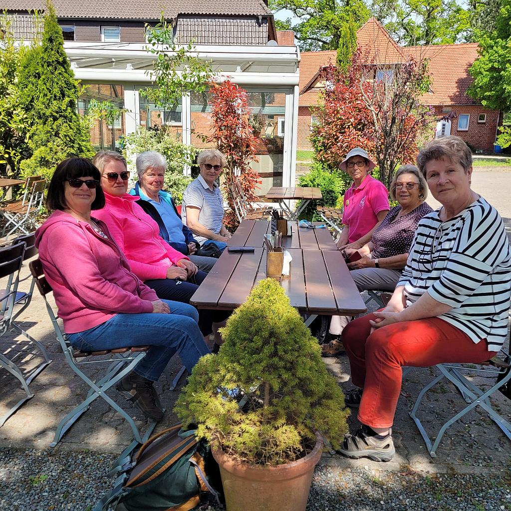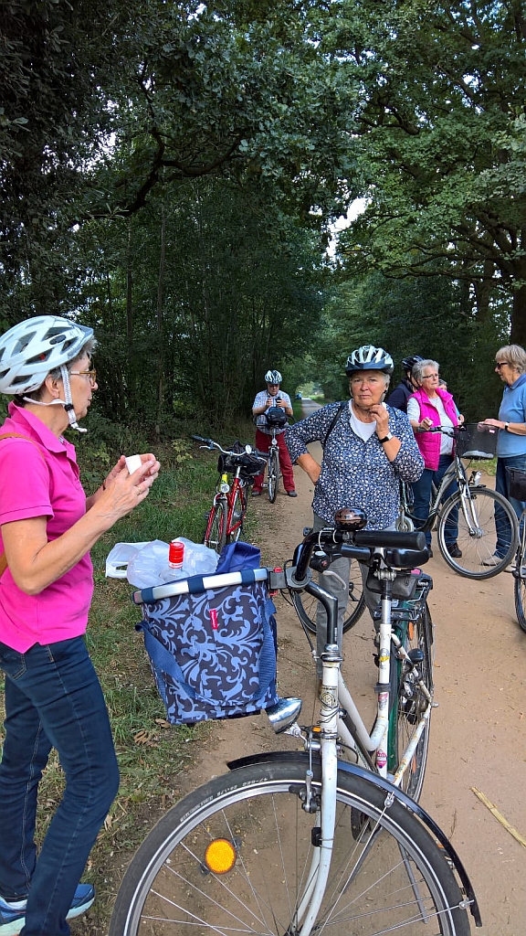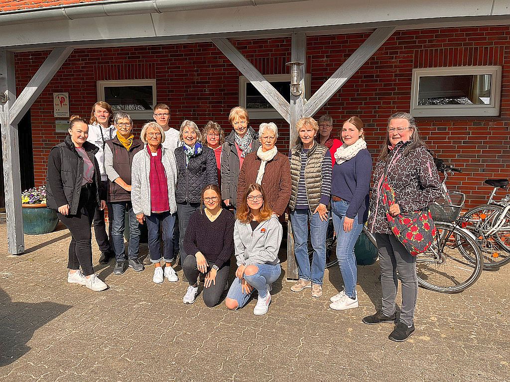 Wir hatten wieder Glück, die Landfrauen-Fahrrad-Tour 2024 konnte bei strahlendem Wetter pünktlich um 10 Uhr vom Goldenen Hahn aus starten. Die Beteiligung mit 21 Teilnehmern haben wir als erfolgreich gesehen. Fünf unserer Radlerinnen hatten sich die Mühe gemacht und sind die ca. 41 km, von Stuvenborn nach Wahlstedt und zurück, mit einem ganz normalen Fahrrad geradelt, über Stock und Stein, aufgerissener Fahrbahn und sandigem Waldboden.