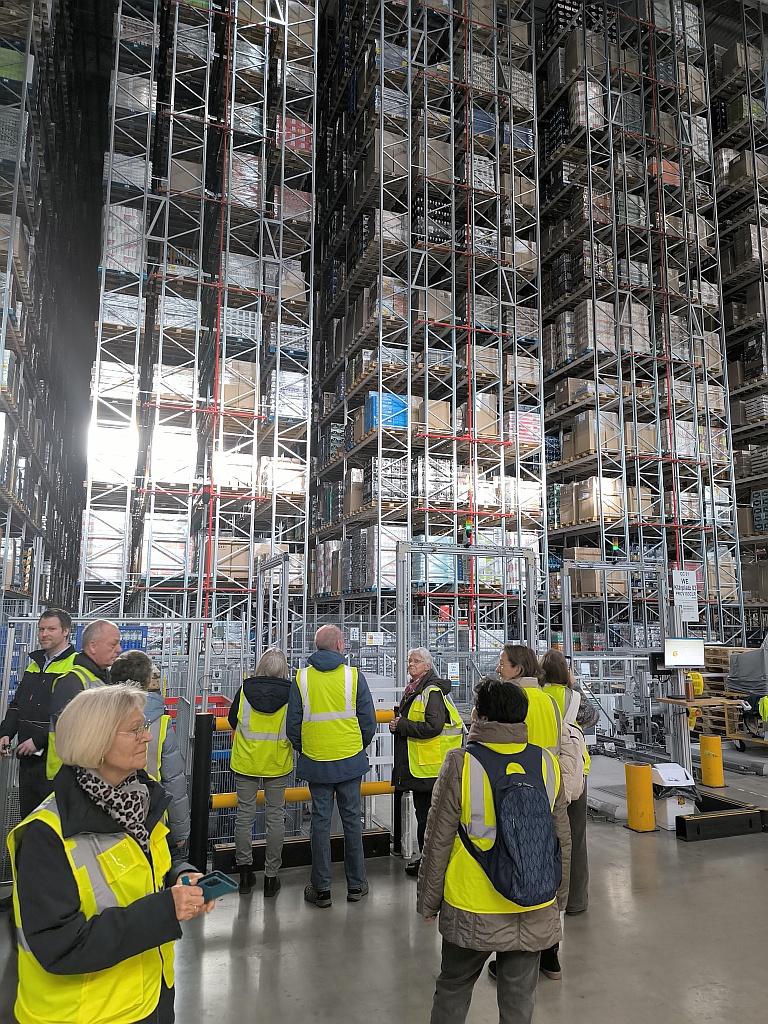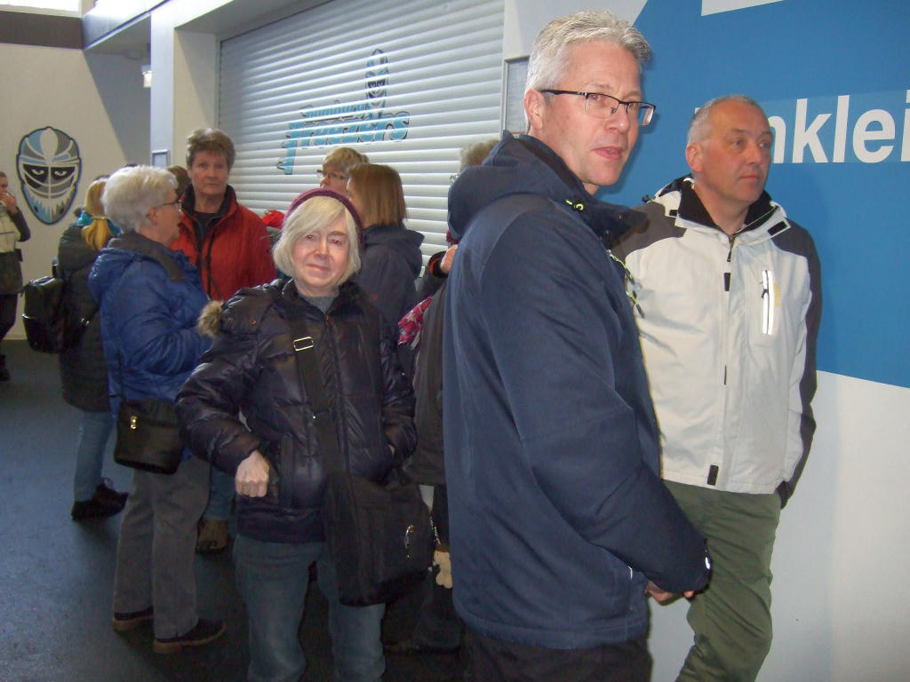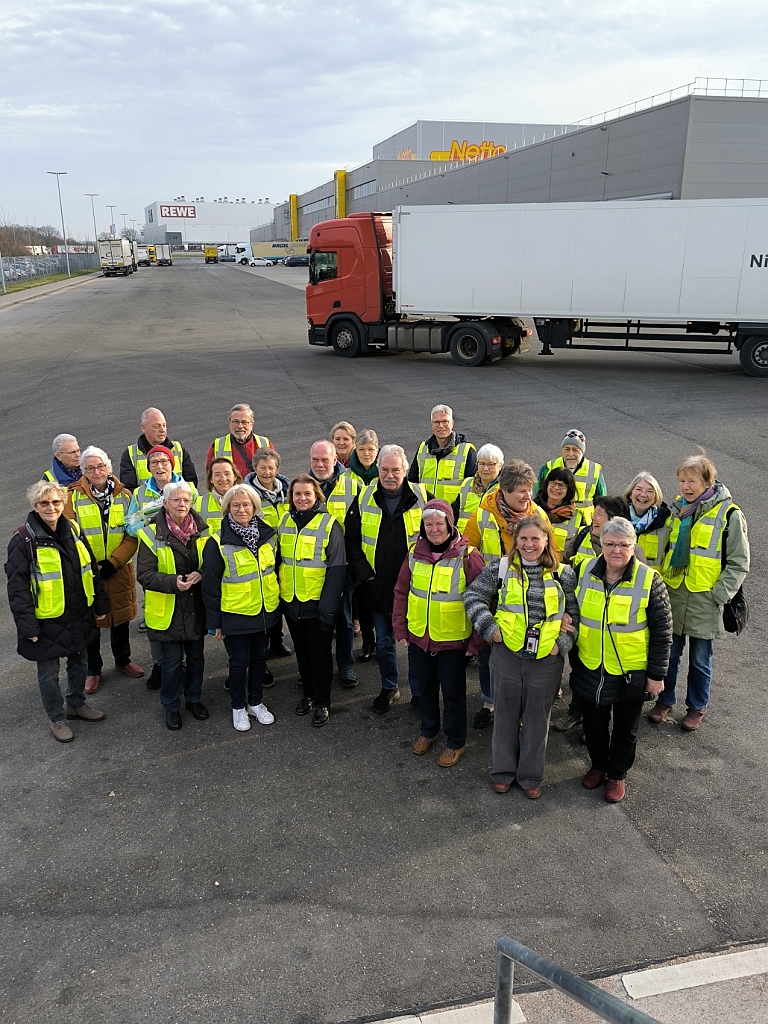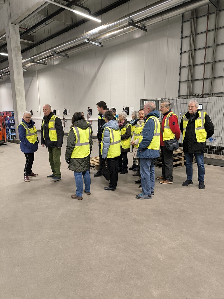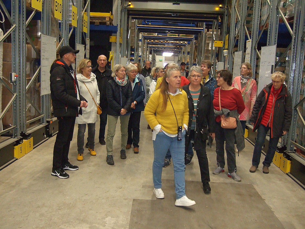 Immerhin 30 Teilnehmer hatten Interesse an einer Führung durch das Netto-Logistik-Center. Aufgeteilt in 2 Gruppen wurden wir durch die riesigen Hallen geführt und mit Hintergrundinformationen „gefüttert“. 300 Mitarbeiter aus diversen Ländern arbeiten an den 130 LKW-Laderampen, eingeteilt in vier Temperaturzonen: -25 Grad = TK-Ware, -6 Grad = Lebensmittel, +5 Grad = Obst und Gemüse und Nonfood/Sonderartikel bei „Zimmertemperatur“. 75 % der Anlieferungen wird maschinell in die 30 Meter hohen Regale einsortiert. Abschließend wurde bei einer Tasse Kaffee auch das Thema Diebstahl erörtert.