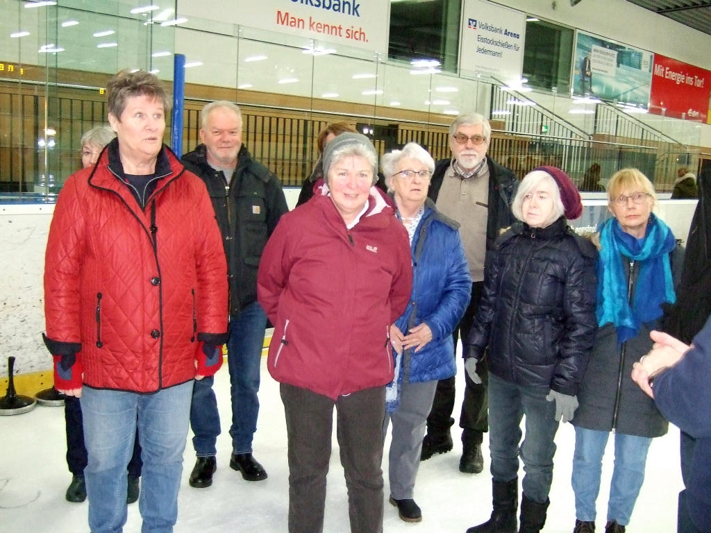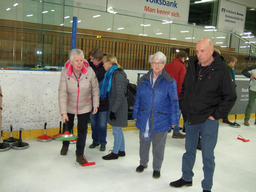 Eisstockschießen erfreut sich großer Beliebtheit. Nach vier Jahren Pause machten sich 24 Teilnehmer, in Fahrgemeinschaften, auf den Weg zur Volksbank Arena Hamburg. Sechs 4-er Mannschaften spielten gegeneinander, kämpften um Punkte, hatten viel Spaß, die Stimmung war einfach toll. Nach der sportlichen Ertüchtigung trafen sich alle aktiven, im Waldcafe Corell (Niendorfer Gehege), zu einem deftigen Essen mit Bierchen oder so. Eine Wiederholung im nächsten Jahr ist nicht ausgeschlossen.