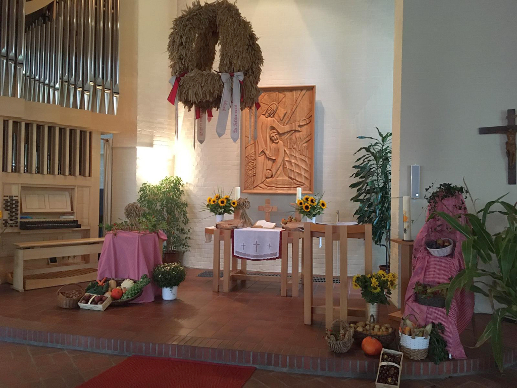 Für den Erntedank-Gottesdienst hat der Vorstand die Kirche Sievershütten geschmückt.