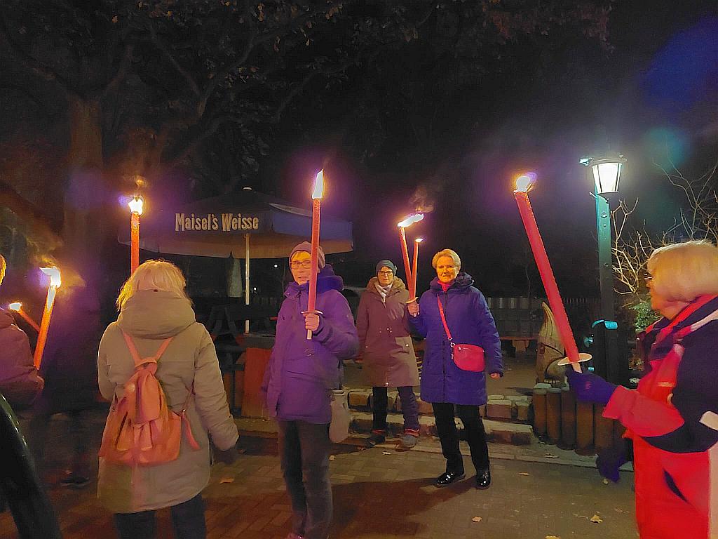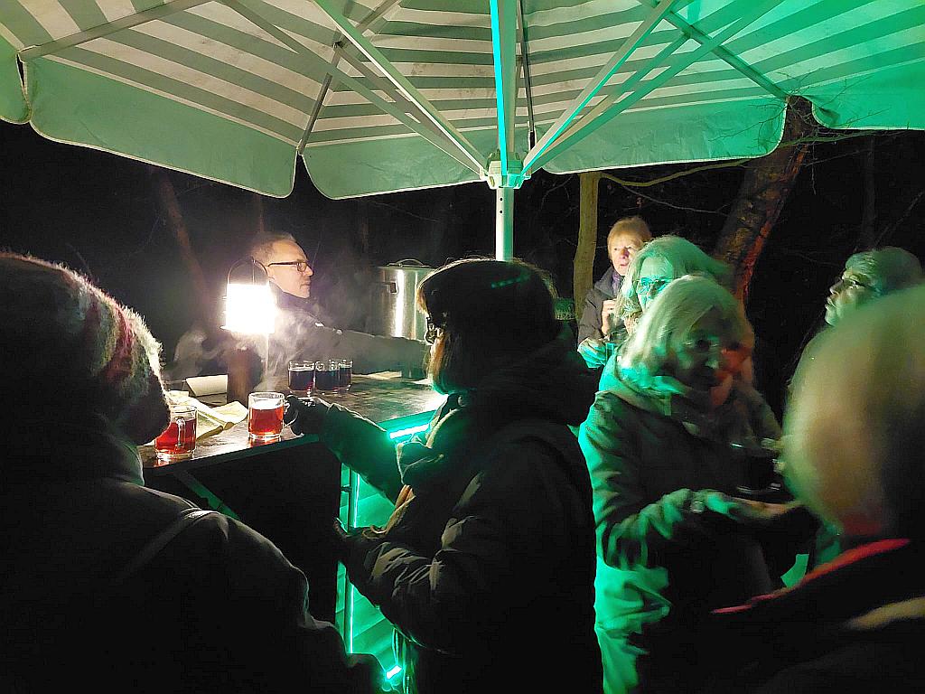 Weihnachten der anderen Art. Zu einem Fackellauf trafen sich 21 Landfrauen aus Stuvenborn und Umgebung im Niendorfer Gehege. Vor dem Waldcafé „Corell“ wurde zu Beginn, nach einem Schluck Zielwasser, um die Wette gehämmert. In geselliger Runde ging es mit Fackeln in den Wald. An einer Glühweinstation wurden die Teilnehmer mit Gebäck, Punsch und Musik empfangen, hier wurde gesungen und geschunkelt. Nach einem gemeinsamen Essen bei „Corell“ endete der kurzweilige Abend.