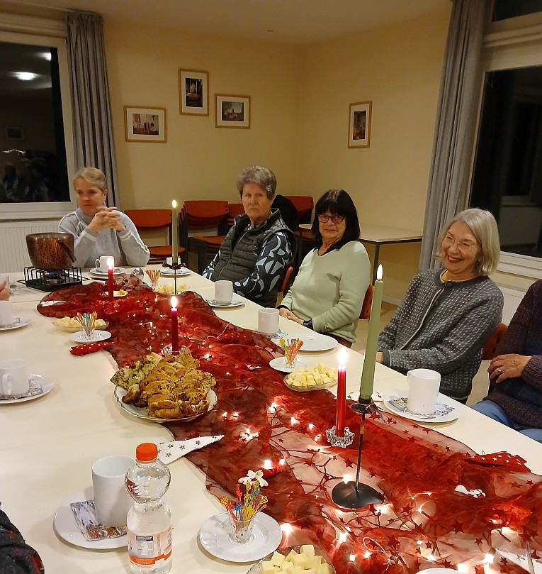 Bei Schietwetter trafen wir uns zur Feuerzangenbowle im Gemeindehaus. Bei heimeliger Atmosphäre wurden Themen aus aller Welt besprochen, nette Kurzgeschichten vorgelesen und der eine oder andere Joke erzählt. Nebenbei wurde natürlich die Feuerzangenbowle (auch alkoholfrei) zelebriert und getrunken. Birgit hatte ein Faltenbrot und Datteldipp mitgebracht und Molly für Käsehäppchen gesorgt, danke an euch. Es war ein kurzweiliger gemütlicher Abend.