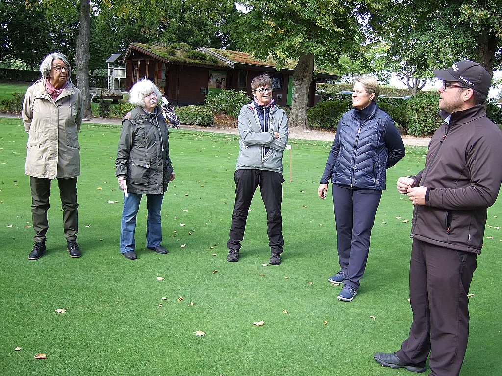 „Play Golf – Have Fun“ ist eine Einsteigerinitiative des Deutschen Golf Verbandes. Warum nicht ausprobieren, dachte sich das Vorstandsteam der Landfrauen aus Stuvenborn und Umgebung. Ganz in der Nähe ist der Golfclub „Gut Waldhof“ zuhause, so wurde kurzerhand ein Schnuppernachmittag gebucht. 15 sportlich aktive Landfrauen trafen sich auf der „Driving-Range“. Vom Trainer gab es erst einmal ein paar humorvolle Tipps über das Verhalten am Abschlagplatz, die Schlägerhaltung und dem Bewegungsablauf. Bei den anschließenden Versuchen den Golfball (Durchmesser: 42,67 mm) in die Ferne zu schlagen wurde doch hin und wieder der Ball verfehlt und nur eine Grassode losgeschlagen – Anfänger halt. Danach ging es zum „Einputten“. Hier wurde ein kleines Turnier ausgetragen, 9 Löcher von unterschiedlicher Entfernung zu treffen war gar nicht so einfach. Es hat großen Spaß gemacht. Zum Abschluss gab es im Clubhaus Kaffee mit Kuchen und viele angeregte Unterhaltungen.
