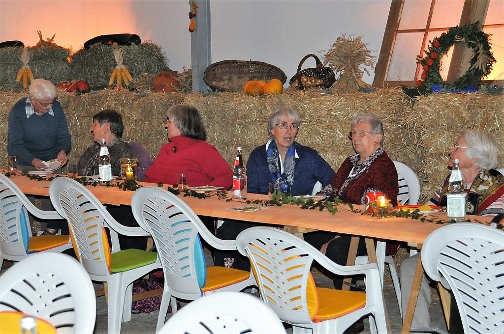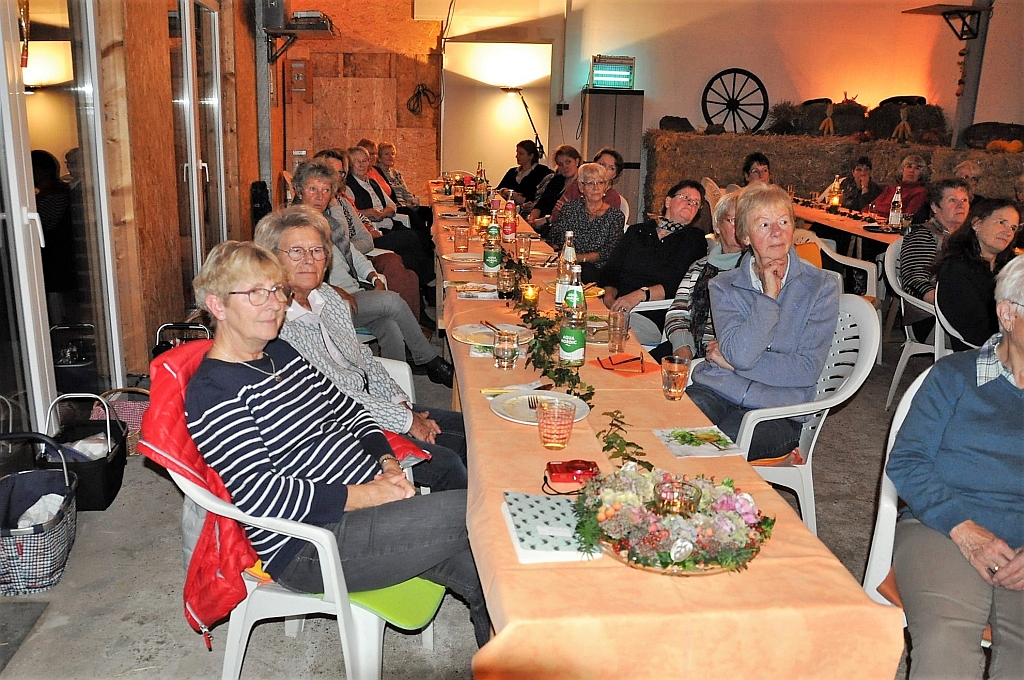 Leider nur 30 Landfrauen trafen sich bei Gesa zum Herbstfest. Wieder war die Halle von Fam. Tepe-Kunrath gemütlich, mit Stroh, Kerzen und Herbstgemüse, dekoriert. Jede Teilnehmerin brachte eine kleine Leckerei für das Buffet mit. Nach dem ausgiebigen Essen berichteten Barbara und Henning Janke über Wildkräuter, die am Wegesrand stehen, und deren Heilwirkung. Sie selbst ernähren sich seit 8 Jahren rein Vegan, mit vielen Kräutern und Gemüse. Wir bekamen reichlich Tipps zur Herstellung von Tees und Smoothies. Zwischendurch trug Herr Janke kleine nette Geschichten vor, Frau Janke spielte einige Stücke auf ihrer Harfe. Das Ehepaar bietet Kräuterkurse, Tagesseminare, Kochkurse und Märchenabende für Erwachsene an. Natürlich betreiben sie in Wrist auch einen Hofladen.