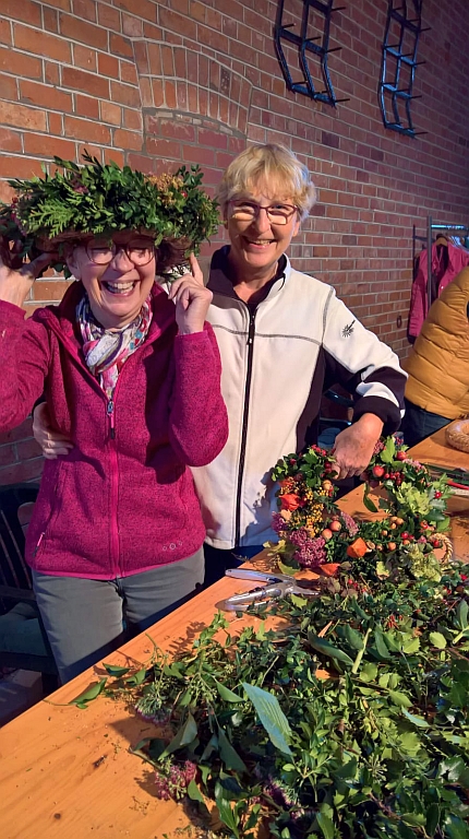 Wir sagten: „Tschüss Sommer“ und trafen uns am 25.9., auf dem Hof von Angela Ziemer, um Herbstkränze zu basteln. 21 Landfrauen hatten sich angemeldet – sehr erfreulich!