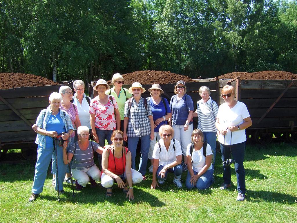 Zu einem Spaziergang durch das Himmelmoor bei Quickborn, trafen sich 15 Landfrauen aus Stuvenborn und Umgebung. In Fahrgemeinschaften ging es zum Treffpunkt am Parkplatz Torfwerk. Hier wurden wir bereits von unserer „Fremdenführerin“ Marlitt Gau erwartet. Ausgerüstet mit kleinem Snack, reichlich Wasser und Fernglas begaben sich die Teilnehmerinnen, bei sommerlichen Temperaturen, auf den ca. 4 km langen Rundweg, der als Moorlehrpfad ausgewiesen ist. Zahlreiche Infotafeln über die Entwicklung des Moores, Geschichte des Moorabbaus, Bildtafeln der Tier-/Pflanzenwelt und Erlebnisstationen luden zum Verweilen ein. Nach 2 ½ Std. Rundgang freuten sich die Landfrauen auf Kaffee und Kuchen am Golfplatz „Gut Kaden“.