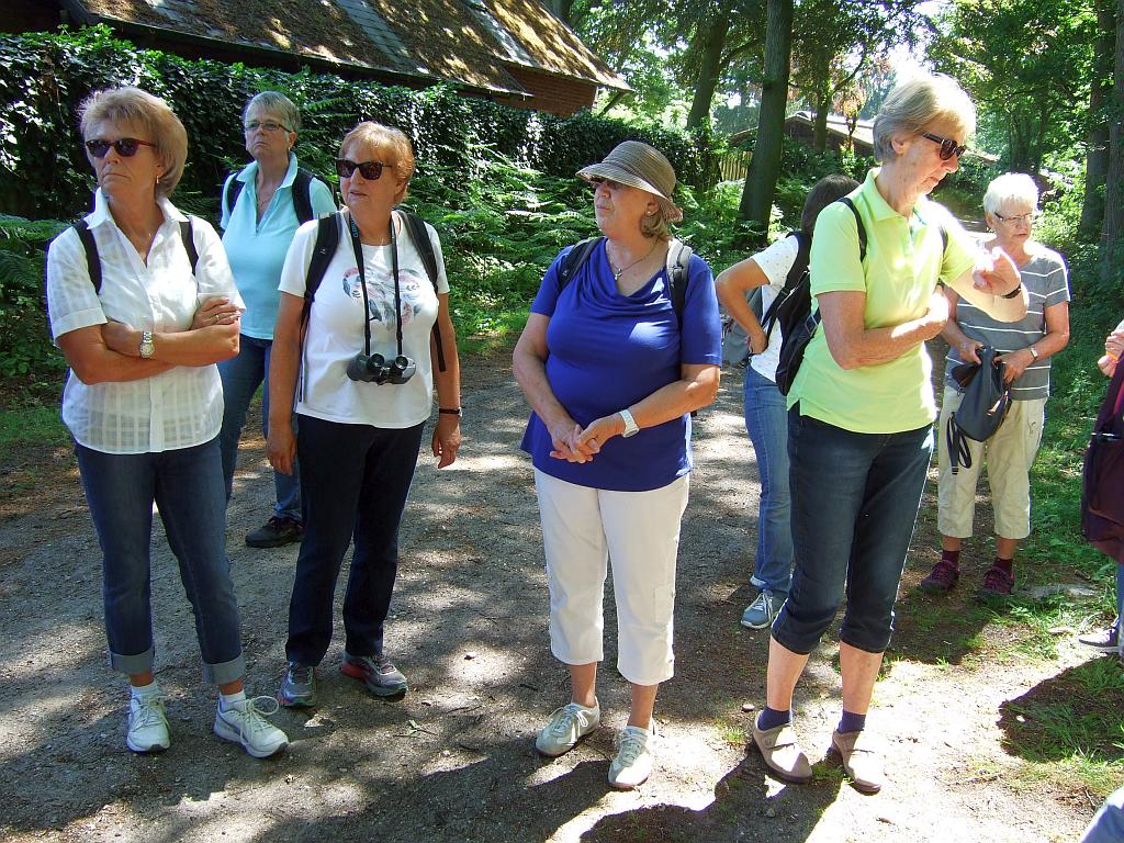 Das Brenner Moor ist Schleswig-Holsteins größtes binnenländische Salzmoor. Durch die langanhaltende Trockenheit sind große Teile des Moores leider ausgetrocknet, die Pflanzenwelt ist in ihrer Entwicklung zurück. Dadurch hat sich die Vogelwelt zurückgezogen. Am Wegesrand entdeckten die Teilnehmerinnen eine Ringelnatter, die ein Sonnenbad nahm. Nach 1,5 Std. und zurückgelegten 6 km endete der Rundgang. Abschließend trafen sich noch einige Damen im Dorfkrug Grabau zu einem, leider mäßigen, Mittagessen.