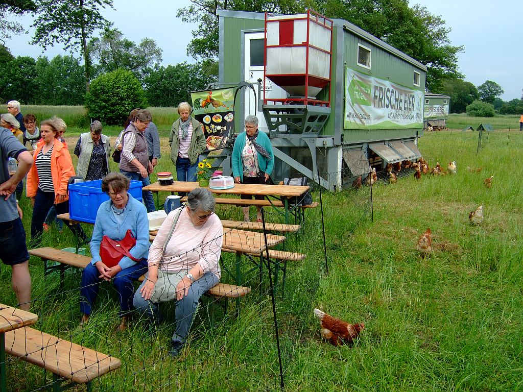 Wir leben auf dem Lande, und überall werden plötzlich Eier aus dem mobilen Eierstall angeboten. Wie sieht so ein „Eiermobil“ von innen aus? Dieser Frage gingen 22 Landfrauen-/männer aus Stuvenborn und Umgebung nach. Viktoria Gloyer, vom Hof Gloyer GbR, bot eine Führung samt Informationen über die Kriterien einer Biohaltung an. Es war ein lehrreicher Nachmittag mit abschließendem Kaffeetrinken.