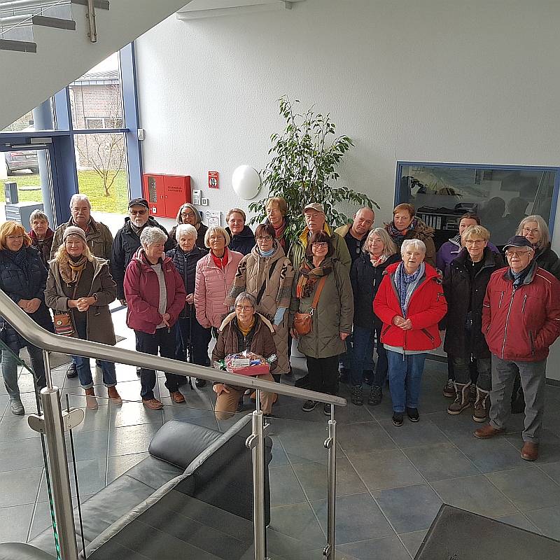 Wie sieht ein moderner Kuhstall von innen aus? Dieser Frage gingen 38 Landfrauen und Männer aus Stuvenborn und Umgebung nach. Bevor es auf den Hof Thies/Gröhn Rinderzucht GbR ging, gab es bei Angela Ziemer erst einmal reichlich Kaffee und Kuchen. Gestärkt ging es über die Straße in den Kuhstall. Klaus Gröhn berichtete kurz über seine Familiengeschichte und den Entschluss, den Hof zu modernisieren. Es wurde ein neuer Stall errichtet, mit großzügigem Boxenlaufstall, in dem sich die Kühe frei bewegen können. Für jede Kuh gibt es eine frei wählbare Liegebox. Die Lauffläche besteht aus Spaltboden, die Ausscheidungen werden unterhalb automatisch „wegbefördert“. Um die Reinigung der Lauffläche und das Einstreuen der Liegebereiche kümmern sich Roboter. Ein weiterer Roboter schiebt regelmäßig das Futter in die Futterstraße. Zu den Melkrobotern haben die Kühe jederzeit Zugang, anhand des RFID-Chips um den Hals der Tiere wird die tägliche Milchmenge pro Tier erfasst. Der Roboter erkennt auch bei jedem Tier, ob es innerhalb der letzten sechs Stunden gemolken wurde. Ist das der Fall, darf das Tier die Melkstrecke sofort wieder verlassen. Liegt das letzte Melken mehr als sechs Stunden zurück, werden die Zitzen automatisch mit Wasser gesäubert und die sogenannten Melkbecher automatisch auf die vier Zitzen gestülpt und die wird Kuh gemolken. Nach gut zwei Stunden endete der informative Rundgang.