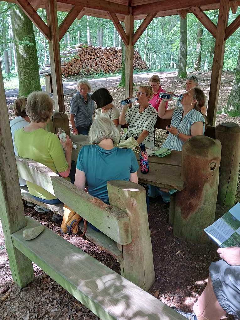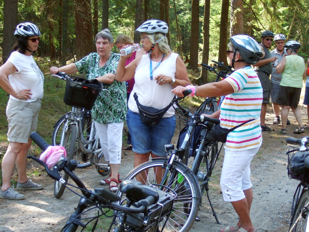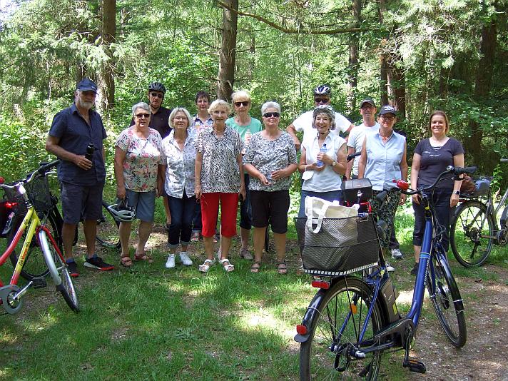Hurra, endlich geht es wieder los. Für die Radtour nach Wahlstedt meldeten sich 16 Radler an. Los ging es, bei bestem Wetter, am Dorfplatz Stuvenborn. Der Weg führte über Todesfelde, durch die Barker Heide in den Segeberger Forst und weiter zu dem „Marine-Artilleriearsenal Fahrenkrug“. In dem ehemaligen Wasserwerk-Bunker befindet sich seit 2012 eine Ausstellung der Kriegs- und Nachkriegsgeschichte. Nach Besichtigung der Exponate wurde, an einem schattigen Plätzchen, Kaffee und selbstgebackener Kuchen gereicht. Silke Eggers hat sich um die Versorgung gekümmert und ist mit dem Proviant per Auto zur Station gekommen. Auch einige Landfrauen, die nicht radeln wollten, fanden sich hier ein. Der Rückweg führte, auf anderen Wegen, wieder durch den Segeberger Forst, der Barker Heide, Voßhöhlen, Bredenbekshorst zurück nach Stuvenborn. Am Ende betrug die Tour - geleitet von Uschi und Hartmut Schröder - 45 km, vielen Dank an alle helfenden Hände.