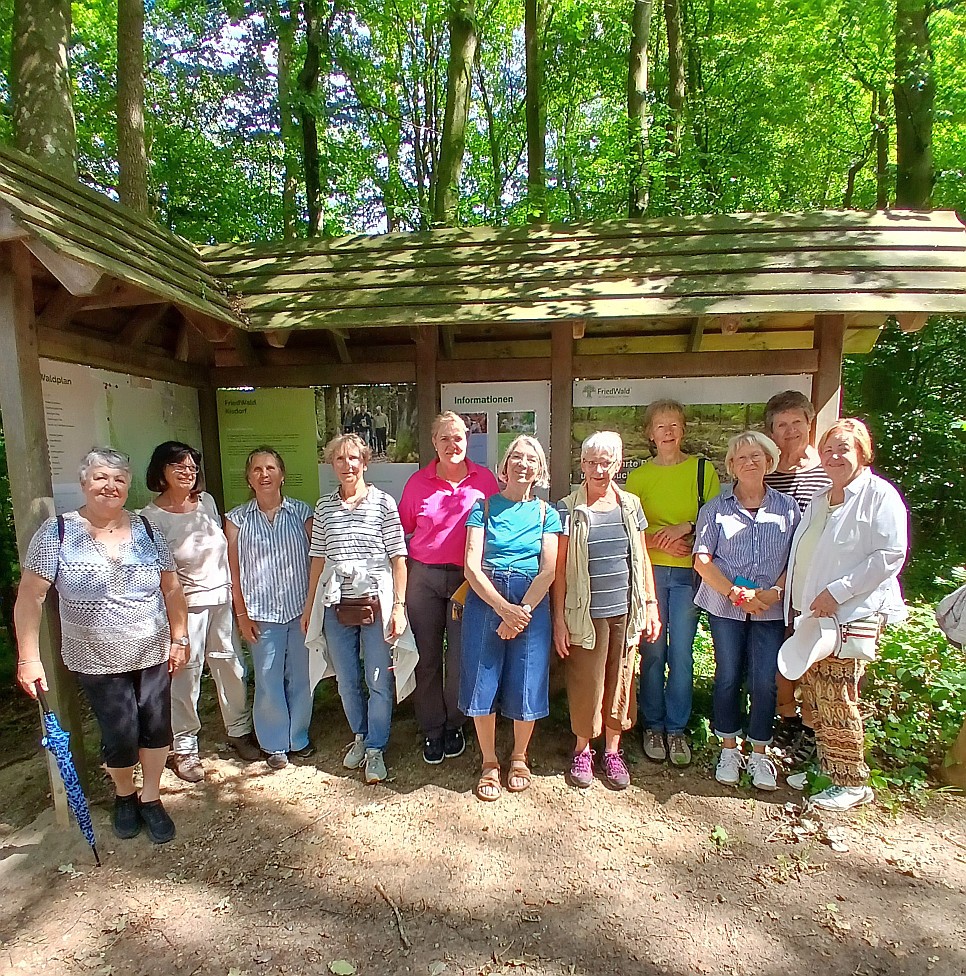 Zu einem Spaziergang, rund um Kisdorferwohld, trafen sich 12 unternehmungslustige Damen. Vom Waldhof ging es los Richtung Nahe, durch Wiesen und Felder zum Endern. Am Friedwald wurde eine Pause eingelegt, hier wurde von Freia Infomaterial über den Friedwald verteilt. Nach ca. 2 Std. kehrte die Runde bei Freia zum Kaffeetrinken ein. Natürlich gab es auch Kuchen und Käsebrote. Danke an die „Sponsoren“ und für die Gastfreundschaft.