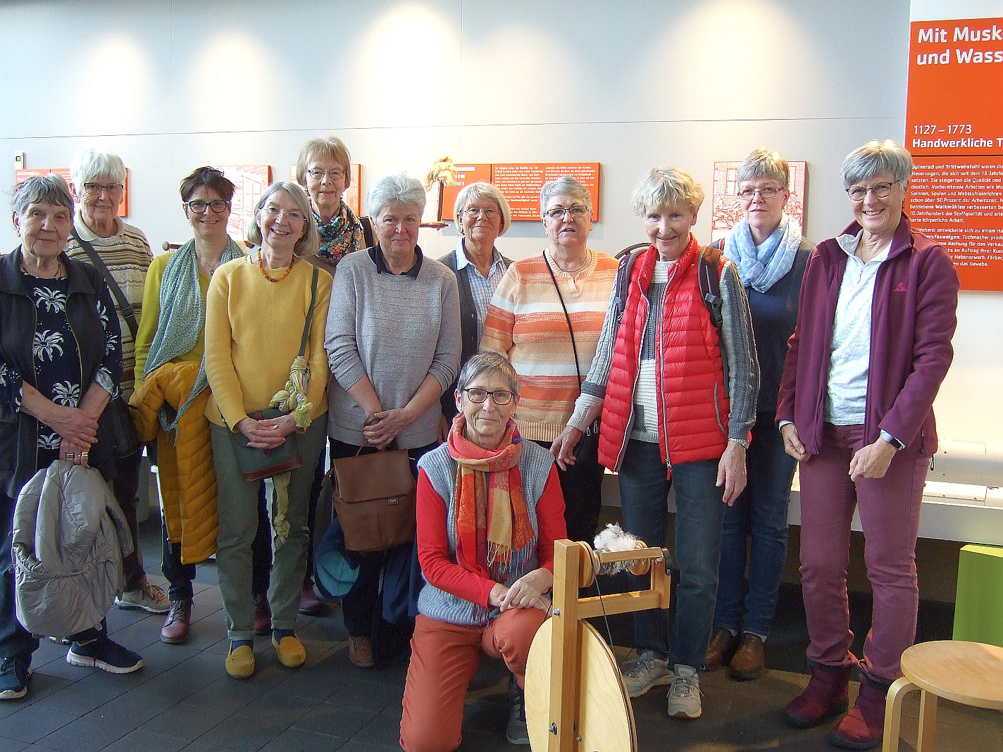 Zu einer Zeitreise durch die Tuchherstellung trafen sich 12 Landfrauen aus Stuvenborn und Umgebung im, erst im Café zu Kaffee und Kuchen, später im Museum Tuch + Technik in Neumünster. Ca. 2000 Jahre Textilgeschichte werden hier in Schaubildern, alten Fundstücken und Maschinen ausgestellt. Wie wird aus Baumwolle ein Faden? Antike Spinnräder und Webstühle bis hin zu neuzeitlichen Webstühlen können hier – auch in Aktion – besichtigt werden. Hintergrundwissen vermittelte uns in ihrer erfrischenden Art unsere Führerin Susanne Mohr. Stadtgeschichte, wie lebten die Menschen damals, wie kam die Tuchindustrie durch die Kriege? Auch die Unterdrückung der Frauen war ein Thema. Nach 1,5 Std. endete der kurzweilige Vortrag.