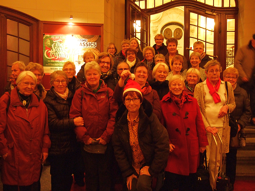 Die Weihnachtsfahrt, am 08.12., ging in die Laeiszhalle Hamburg. Hier lauschten, leider nur 30 Landfrauen und ein Ehemann, den Geschichten von Hubertus Meyer-Burckhardt, dem Konzert des Carl-Philipp-Emanuel-Bach-Chors begleitet durch das Philharmonischen Staatsorchester Hamburg. Unter Mitwirkung des Publikums endete das Konzert mit dem Weihnachtslied „Oh du fröhliche“. Anschließend fuhren wir zur Reeperbahn und ließen uns am Bus den mitgebrachten Punsch/Glühwein, Kaffee und das Gebäck schmecken. Ein Bummel über den Weihnachtsmarkt auf dem Spielbudenplatz rundete den Abend ab. Mit einer Lichterfahrt durch Hamburg endete der Ausflug.