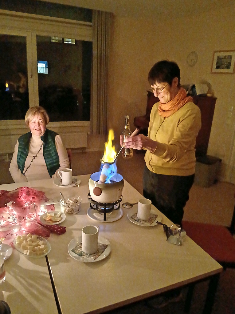 Bei Schietwetter trafen wir uns zur Feuerzangenbowle im Gemeindehaus. Bei heimeliger Atmosphäre wurden Themen aus aller Welt besprochen, nette Kurzgeschichten vorgelesen und der eine oder andere Joke erzählt. Nebenbei wurde natürlich die Feuerzangenbowle (auch alkoholfrei) zelebriert und getrunken. Birgit hatte ein Faltenbrot und Datteldipp mitgebracht und Molly für Käsehäppchen gesorgt, danke an euch. Es war ein kurzweiliger gemütlicher Abend.